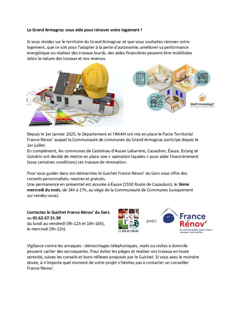 Le Grand Armagnac vous aide pour rénover votre logement avec France Renov' !