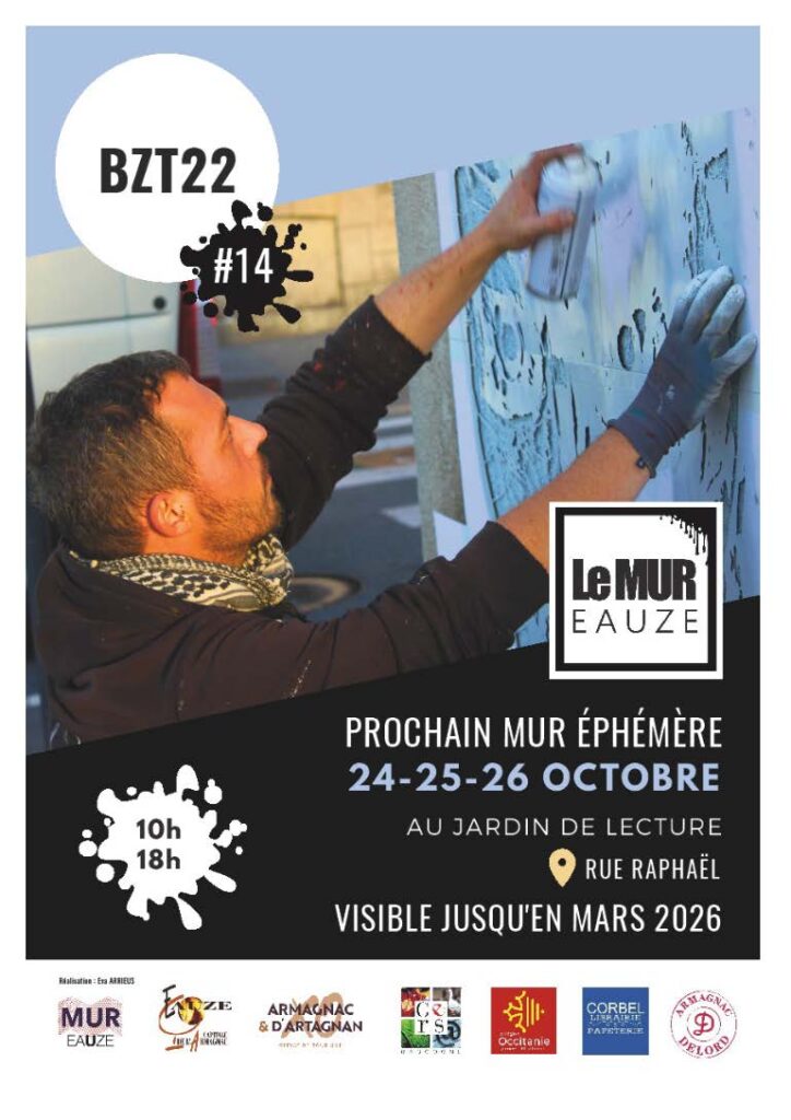14ème création du mur éphémère (visible jusqu’en Mars 2026) par BZT22 de 10h à 18h